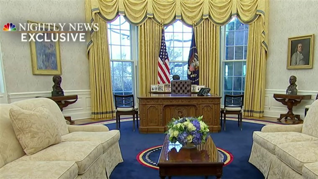 다음은 조바이든 Joe의 새 회사 사무실입니다. 이제 궁금한 것은 세 번째 창에 있는 것이 무엇입니까? 알아낼 수는 없지만 트럼프가 있었을 때 오벌오피스 창에는 없었습니다. 그게 그냥 카메라 앵글 때문이라고 생각하세요? 그렇다면 아래를 참조하십시오.