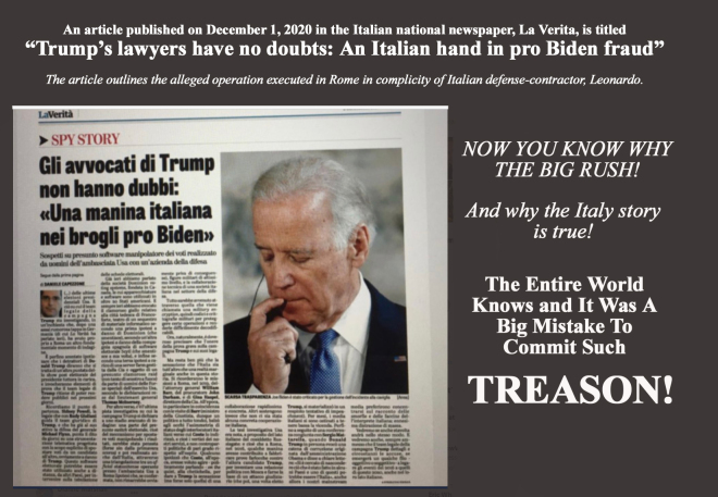 이탈리아 신문, La Verita는 2020년 12월 1일자 기사로 다음 바이든 관련 내용을 올렸다;