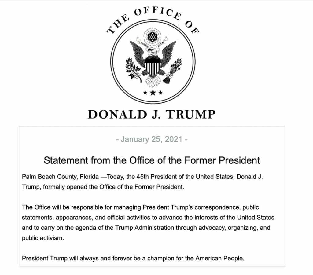 팜비치 카운티, 플로리다 - 오늘 미국 45대 트럼프 대통령은 전 대통령 사무실을 공식 개시했습니다.