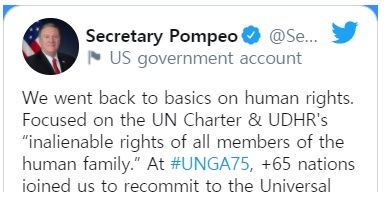 폼페이오 국무장관은 하루 종일 애국자들에게 격려를 전하고 있습니다.