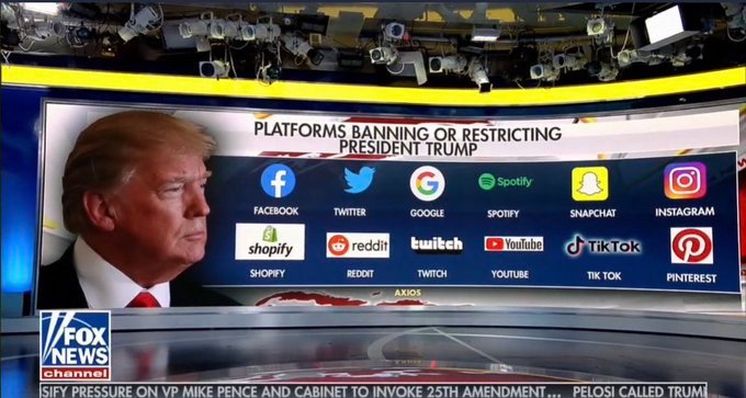 The most obvious sign of the unfolding coup is the most memorable: The suspension, and then banning, of the President's Twitter account. After this ban was handed down, a flurry of other tech companies rushed to follow suit.