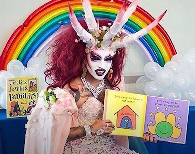 - Let all of the criminals, including rapists, transgenders and child molesters, out of prison, and allow daycare centers to hire them to teach the toddlers, preschoolers, children and tweens all about gender fluidity while dressed up as drag queens who get on their hands and knees and howl at satan. Yes, it's Drag Queen Story Time, so all you kids gather 'round and learn how to mutilate your body, take cancer-causing hormones, and have sex as soon as possible with anyone who says it's cool. Can the satanic-ritual horns be any more obvious here?