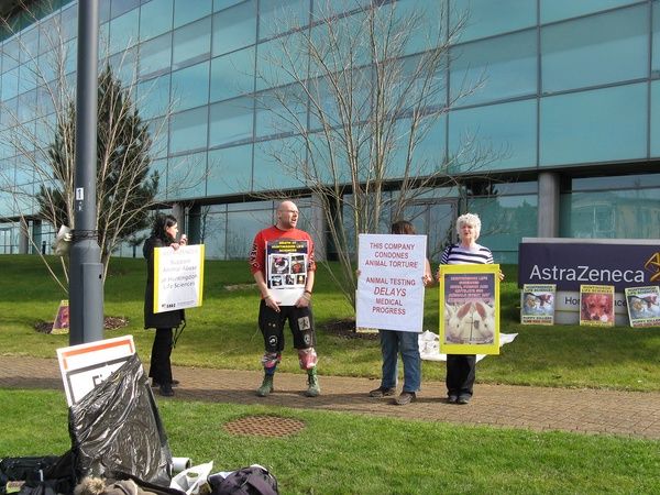 아스트라제네카 Astra Zeneca 앞에서 시위하는 사람들. 크리에이티브 커먼즈 사진 Protestors at Astra Zeneca. Creative Commons photo.