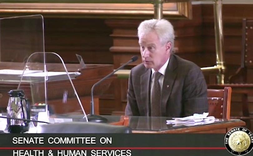 피터 맥컬로우 박사가 텍사스 주 상원 보건 및 복지위원회에서 연설하는 모습