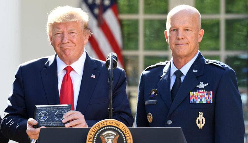 President Trump with the Chief of Space Operations, General John Raymond, who was put in place March 26, 2019.