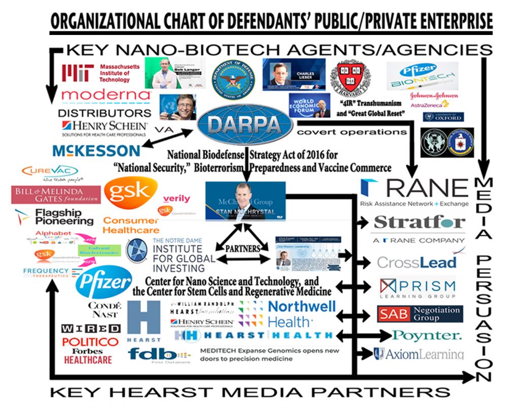 Financed by ‘Bill Gates & Company' with M.I.T. and Harvard scientists' complicity, top Defense Department, CIA, and National Security officials have secreted from the lay public the risky wireless hydrogel neuroscience and corresponding Moderna/Pfizer mRNA vaccine and nasal swab developments. The nano-biotechnology suitable for nasal swabs and vaccination injections was largely pioneered by Charles Lieber at Harvard, working with leading M.I.T. and Moderna nano-biotech ace, Robert Langer, according to evidence filed for review by Judge John Badalamenti and Nicholas Mizell in Fort Myers, Florida on April 12, 2021.