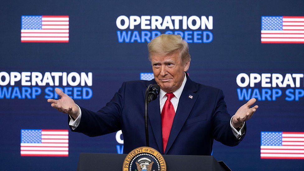 트럼프는 백신을 맞으려면 5 년이 걸렸을 것이라고 반복해서 말했고, 적어도 5 년, 최소한 3 년을 기다리지 않아도 됐습니다. 그는 나만이 할 수 있다고 말했다. 그 말에 대해 길고 열심히 생각하십시오.