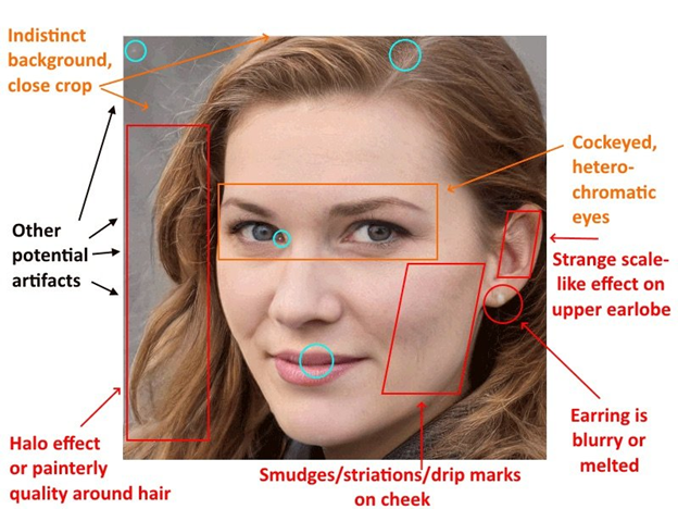 실제처럼 보이는 이미지를 재현하는 기술은 빠른 속도로 발전하고 있습니다. 2019 년 2 월 그래픽 하드웨어 제조업체인 엔비디아 NVIDIA는 사실적인 얼굴 생성 소프트웨어 스타일갠 StyleGAN을 위한 오픈소스 코드를 출시했습니다. 이 소프트웨어는 GAN (갠, 생성적 적대적 신경망 generative adversarial network) 접근 방식을 사용하는데, 두 신경망은 고양이와 쥐의 게임을 하고, 하나는 실제 사진과 구별할 수없는 인공 이미지를 생성하려고 시도하고, 다른 하나는 차이를 알려줍니다. 두 네트워크는 서로를 훈련시킵니다. 몇 주 후에 이미지 생성 네트워크는 이러한 가짜와 같은 이미지를 생성할 수 있습니다. 스타일갠 StyleGan에서 얼굴을 만들고 국제 스파이 조직, CIA 및 중국에서 사용하는 방법을 여기에서 읽어보십시오. 이런 기술은 스파이 활동에 사용됩니다 used in espionage.