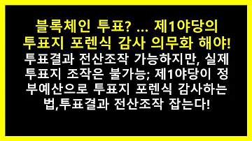 블록체인 투표 도입 막을 수 없다면, 제1야당의 투표지 감사 의무화 해야; 전산으로 투표결과의 대대적 조작 가능하나, 투표지 대대적 ...