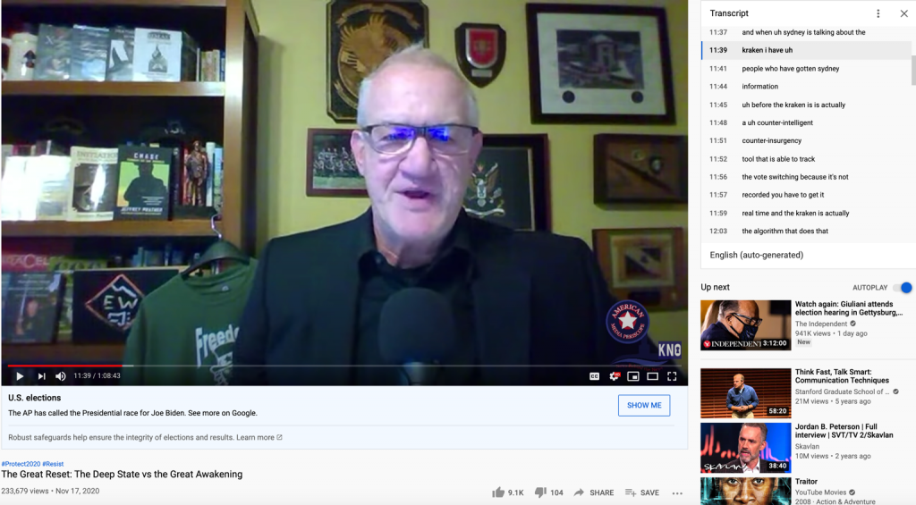 그들은 계속해서 계속해서 .... 물론 그들은 QAnon을 지원한 전 미 육군 특수부대 병사이자 라디오 호스트 인 제프리 프래터 Jeffrey Prather를 끌어들였습니다. 그리고 그가 파월 Powell의 발언이 언급했다고 주장하는 YouTube에 비디오를 업로드한 방법 "실시간으로 투표의 알고리즘 비율 전환을 기록한 사이버 알고리즘 소프트웨어"와 "크라켄 Kraken"이 "자동 실행 원격 모니터링 시스템"이라는 말을 들었습니다. 물론 이 기사는 이 모든 것을 수사적이고 완전한 넌센스로 비난했습니다. 큐애넌 QAnons에 대한 더 많은 음모의 사료를 만들기 위해 만들어졌습니다.